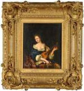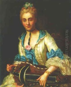 Portrait Einer Dame Mit Hut Und Laute