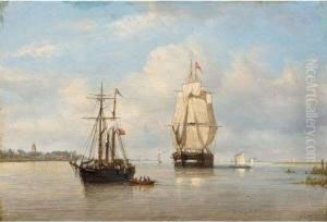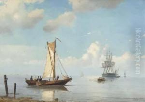 A Rowing-boat Approaching A Fishing Smack, A Dutch Frigat At Anchorin The Distance
