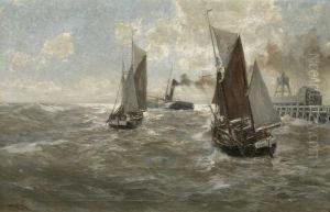 Segler Und Fahrboote An Der Hollandischen Kuste