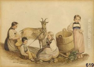 A Putto Playing With A Goat Before A Fountain