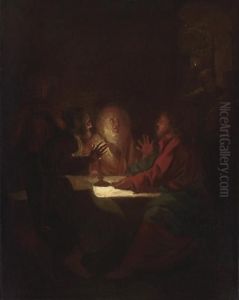 A Courtier And A Musician In A Candlelit Room