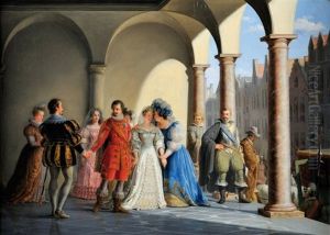 Galant Sallskap Vid Fackelbarande Putto