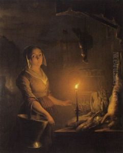 Eine Kochin Mit Wildbret Bei Kerzenlicht