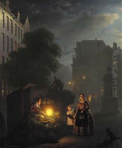 An Almond Seller At The Botermarkt In Amsterdam By Candle Light