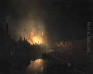 Rotterdam On Fire: A View Of The Steigersgracht Towards The Groote Markt With A Statue Of Erasmus
