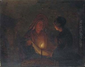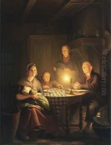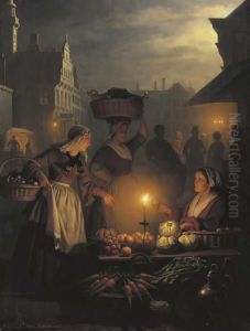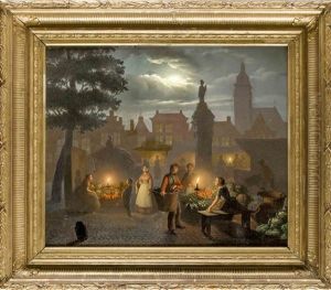 Throughout the 1830s and 1840s, van Schendel's popularity grew, particularly in Belgium, the Netherlands, and Germany. His night scenes, which often depicted lively marketplaces, were celebrated for their realistic portrayal of light, capturing the nuances of candle and lamplight with precision and warmth. These paintings not only showcased his technical skill but also offered a glimpse into the social and cultural aspects of 19th-century European life.