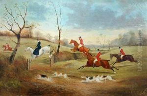 Huntsmen, Horses And Hounds Gathered Before A Hunt, Together With Another, A Pair