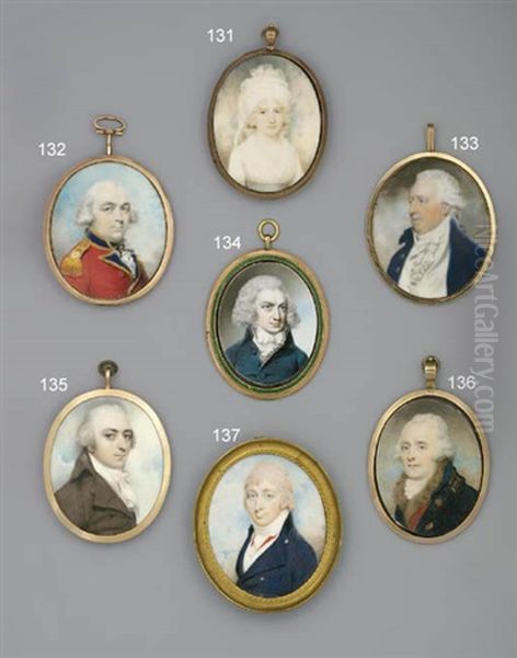 A Gentleman, In Blue Coat With Gold Buttons And Gold Loops On The Collar, Fur-bordered Red And Black Striped Waistcoat And Frilled Cravat