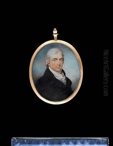 A Gentleman, Wearing Blue Coat With Brass Buttons And Black Collar, White Waistcoat, Frilled Chemise And Tied Stock