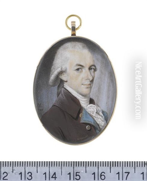 A Gentleman (james Saumarez, 1st Baron De Saumarez?), Wearing Brown Coat, Gold Figured Turquoise Waistcoat And White Lace Cravat