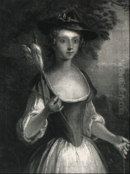 A Young Girl Spinning Oil Painting by Philip Mercier