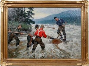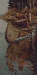 Trappers In A Canoe