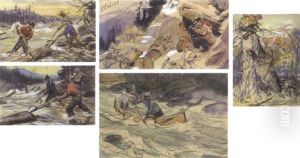 Logging Scene With 5 Men
