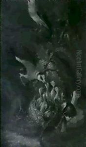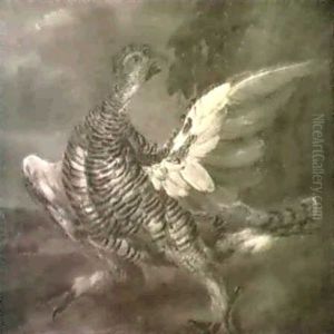 A Chicken By Baskets Of Asparagus And Mushrooms By Dead Birds In A Landscape