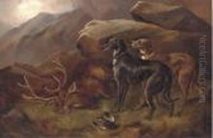 Still Life Of A Deer, Owl And Other Birds In A Landscape Setting