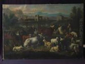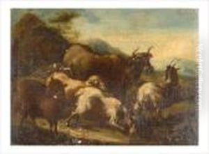 A Shepherd With A Laden Horse, Sheep And Goats In A Landscape; And A Shepherd Resting Beside A Bull, Sheep And Goats In A Landscape