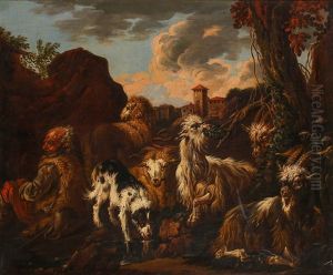 A Milkmaid With Goats, Sheep And A Dog, In An Italianatelandscape