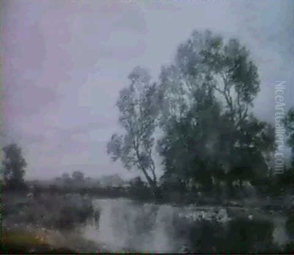 Flusslandschaft Mit Bauernhausern