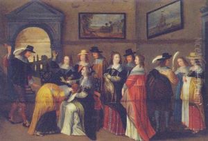 Interieur Mit Tischgesellschaft Und Musikant