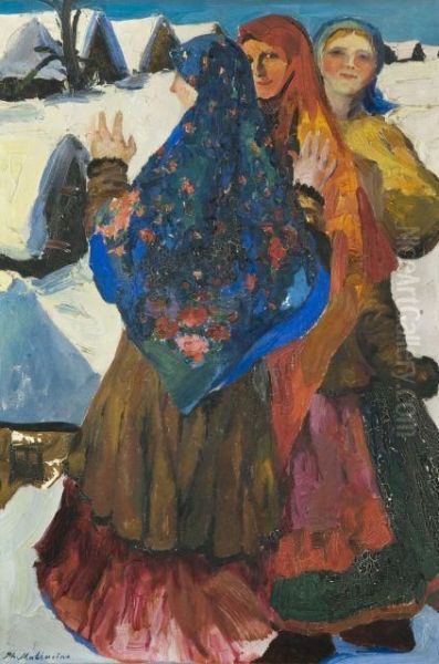Trois Paysannes Russes Dans Un Paysage D'hiver