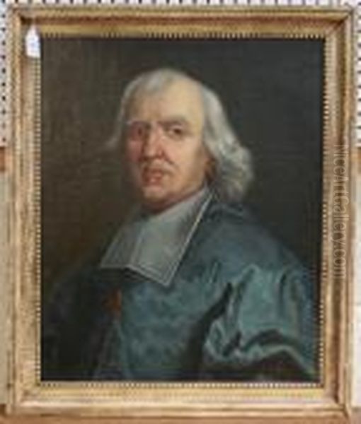 Half Length Portrait Of A French Cleric Wearing A Blue Tunic And Gilt Crucifix