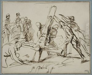 A Wooded Landscape With A Cottage By A Path At Dusk, With An Artist Sketching In The Foreground