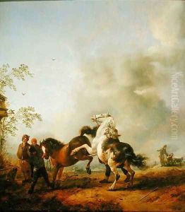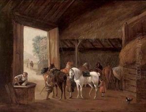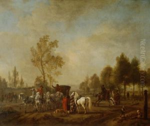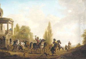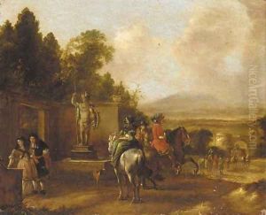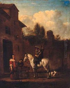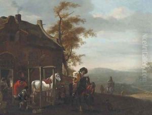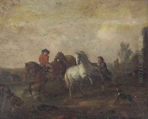 A Huntsman Saddling His Horse, An Extensive Landscape Beyond