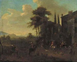 A Hunting Party Gathered By A Villa