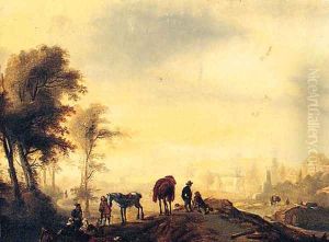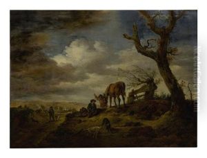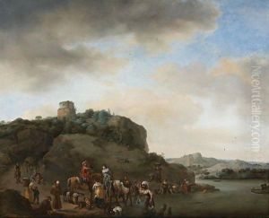 Landscape With Cavalrymen Crossing A Ford And Peasants Taking Refreshment From A Wagon