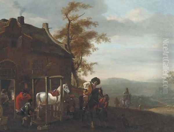 Bring the timeless beauty of Philips Wouwerman's Cavalrymen at a forge into your home with a handmade oil painting reproduction. Carefully recreated on canvas by skilled artists using traditional techniques, this piece captures the delicate brushwork, subtle light, and vibrant color of the original masterpiece. With museum-level quality and rich texture, it brings elegance and artistic depth to any space. Enjoy free shipping and make this masterpiece a part of your personal collection.