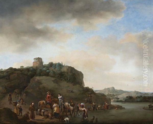 Landscape With A Hawking Party Stopped By A River