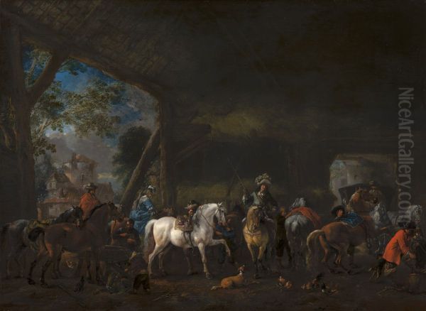 Bring the timeless beauty of Philips Wouwerman's 'The Arrival at the Stable' into your home with a handmade oil painting reproduction. Carefully recreated on canvas by skilled artists using traditional techniques, this piece captures the delicate brushwork, subtle light, and vibrant color of the original masterpiece. With museum-level quality and rich texture, it brings elegance and artistic depth to any space. Enjoy free shipping and make this masterpiece a part of your personal collection.