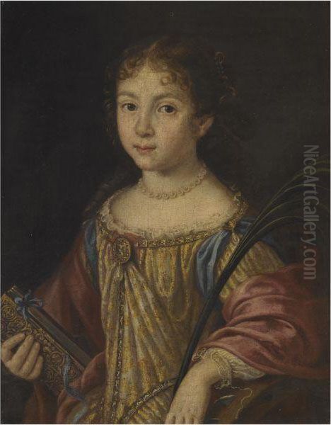 A Portrait Of A Young Girl As Saint Catherine Holding A Book Andthe Martyr's Palm
