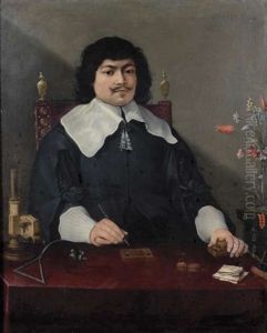 Portrait Of An Architect In A Blue Embroidered Coat Decorated With Red Ribbons, Standing Beside A Table With Architectural Drawings