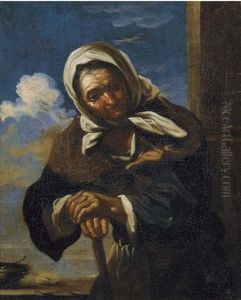 A Landscape With Drovers And Their Animals Beside A River, A Classical Town Beyond