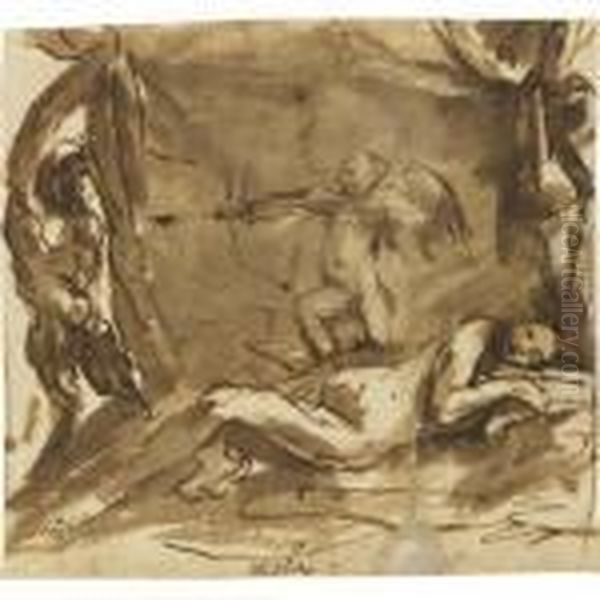 A Putto Protecting The Sleeping Venus From A Spying Faun