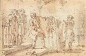 A Caricature Portrait Of The Artist Paolo De'matteis In His Studio
