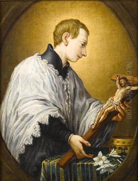 Saint Luigi Gonzaga Adoring A Crucifix, Within A Painted Oval