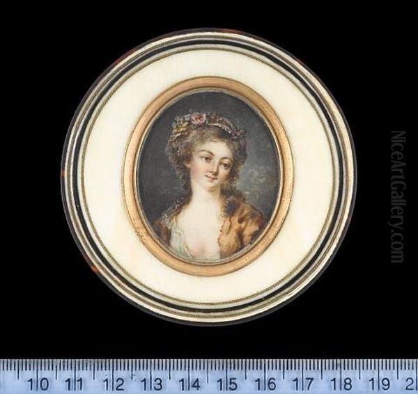 A Lady, Wearing A Yellow Robe, Open To Reveal White Underslip, A Rose, Flowers And Ribbon In Her Powdered Hair
