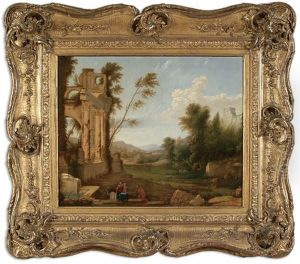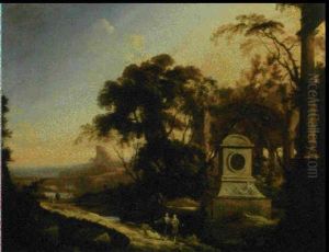 Antikisierende Landschaft Mit Zwei Figuren Bei Einem Grabmal