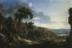 Wooded Landscape With Christ And The Woman Of Samaria Beside Ruins