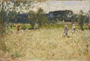 Peasants Grazing Their Cattle Before An Italianate Landscape With A Bridge In The Distance
