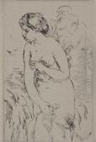 Baigneuse Debout, A Mi-jambes Oil Painting by Pierre Auguste Renoir