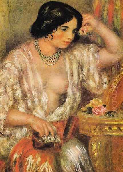 Bring the timeless beauty of Pierre Auguste Renoir's Gabrielle Wearing Jewelry into your home with a handmade oil painting reproduction. Carefully recreated on canvas by skilled artists using traditional techniques, this piece captures the delicate brushwork, subtle light, and vibrant color of the original masterpiece. With museum-level quality and rich texture, it brings elegance and artistic depth to any space. Enjoy free shipping and make this masterpiece a part of your personal collection.