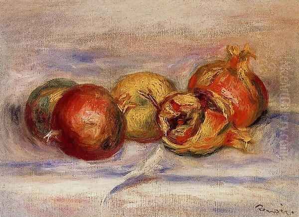 Bring the timeless beauty of Pierre Auguste Renoir's Three Pomegranates And Two Apples into your home with a handmade oil painting reproduction. Carefully recreated on canvas by skilled artists using traditional techniques, this piece captures the delicate brushwork, subtle light, and vibrant color of the original masterpiece. With museum-level quality and rich texture, it brings elegance and artistic depth to any space. Enjoy free shipping and make this masterpiece a part of your personal collection.
