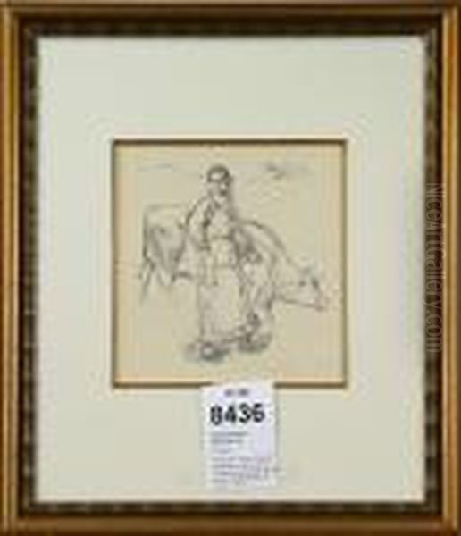 "femme A La Vache" Ur "la Vie Et L'oeuvres De P.a. Renoir" 1918, Stampelsignerad, Litografi. 16,5x16