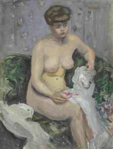 Femme Nue Assise Sur Un Divan