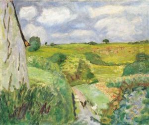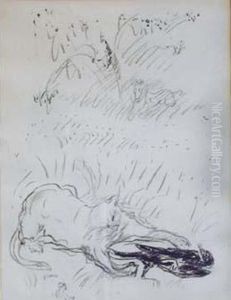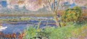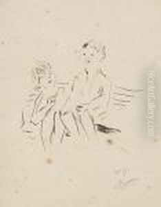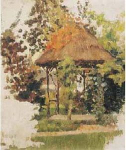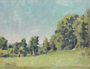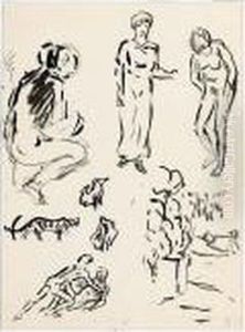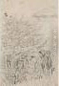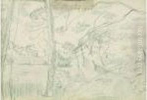 Paysage A Trois Personnages Et Saule (etude Pour La Decoration'l'automne, Les Vendanges')