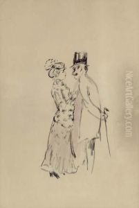 L'artistes Roussel, Vuillard, Toulouse-lautrec, Denis Et Bonnard Dans Le Place Blanche Au Fond Du Moulin Rouge