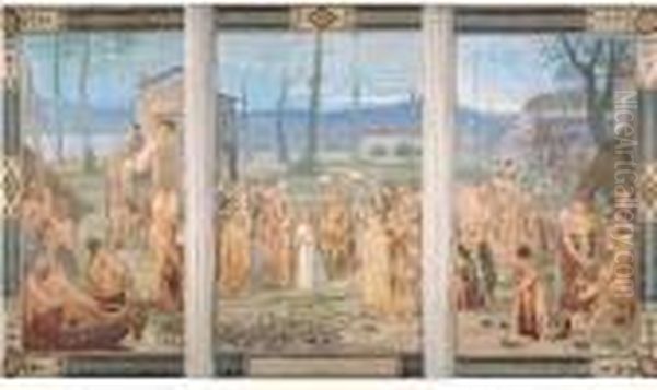 L'enfance De Sainte Genevieve, Esquisse En Triptyque